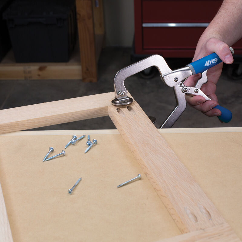 Les pinces classiques de Kreg permettent de créer des joints parfaitement affleurants, et elles peuvent être utilisées pour de nombreuses autres tâches qui nécessitent un serrage solide sans rayer. Ces pinces sont pourvues de grands coussinets de serrage qui répartissent uniformément la force de serrage et maintiennent les pièces à ras pendant l'assemblage. Lorsqu'elle est utilisée dans la menuiserie Kreg, la face de serrage extra-large est positionnée du côté "montré" du joint.