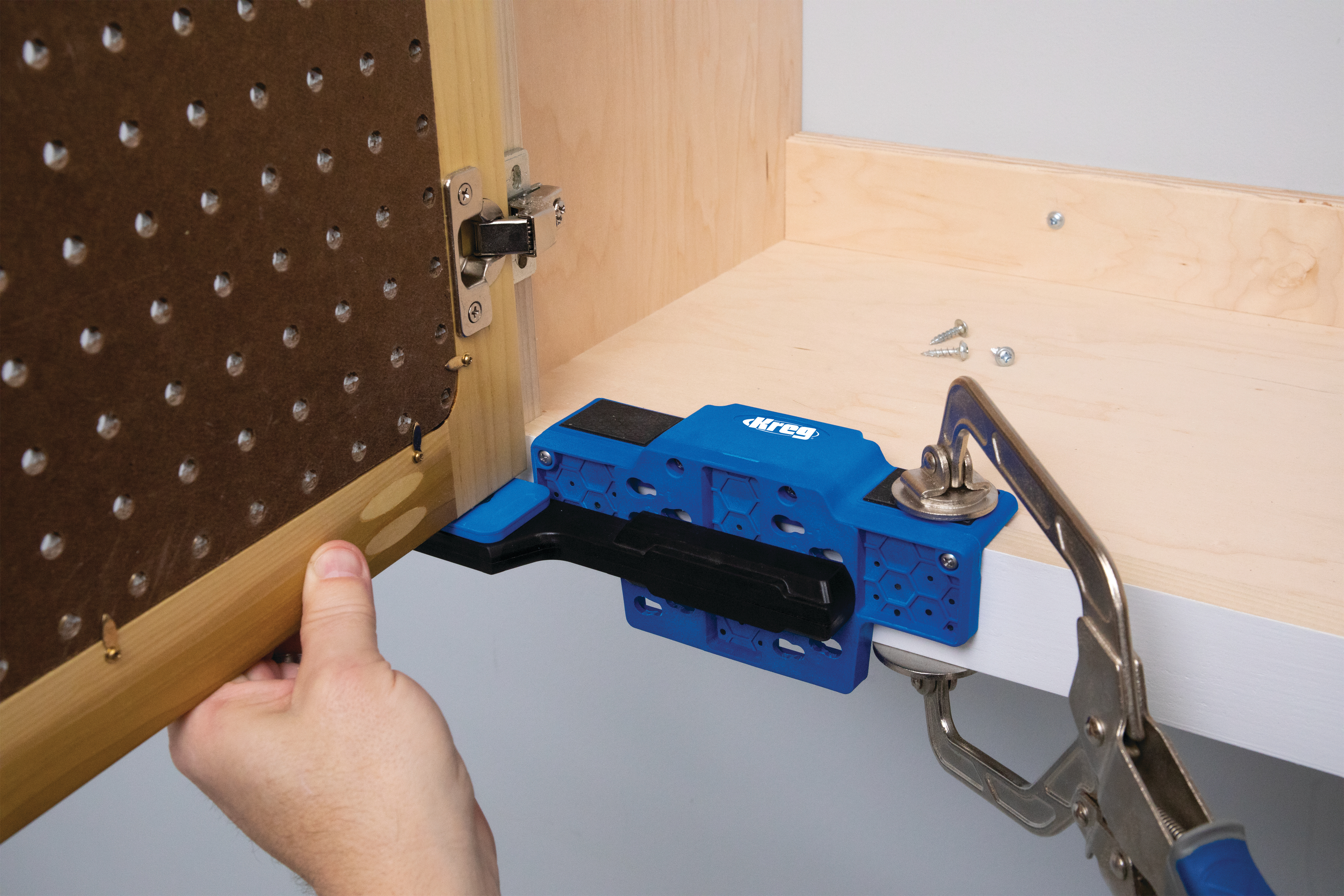 Que vous installiez une porte d'armoire ou fabriquiez des portes pour toute une cuisine, le gabarit de charnière dissimulée fournit des résultats fiables et cohérents.