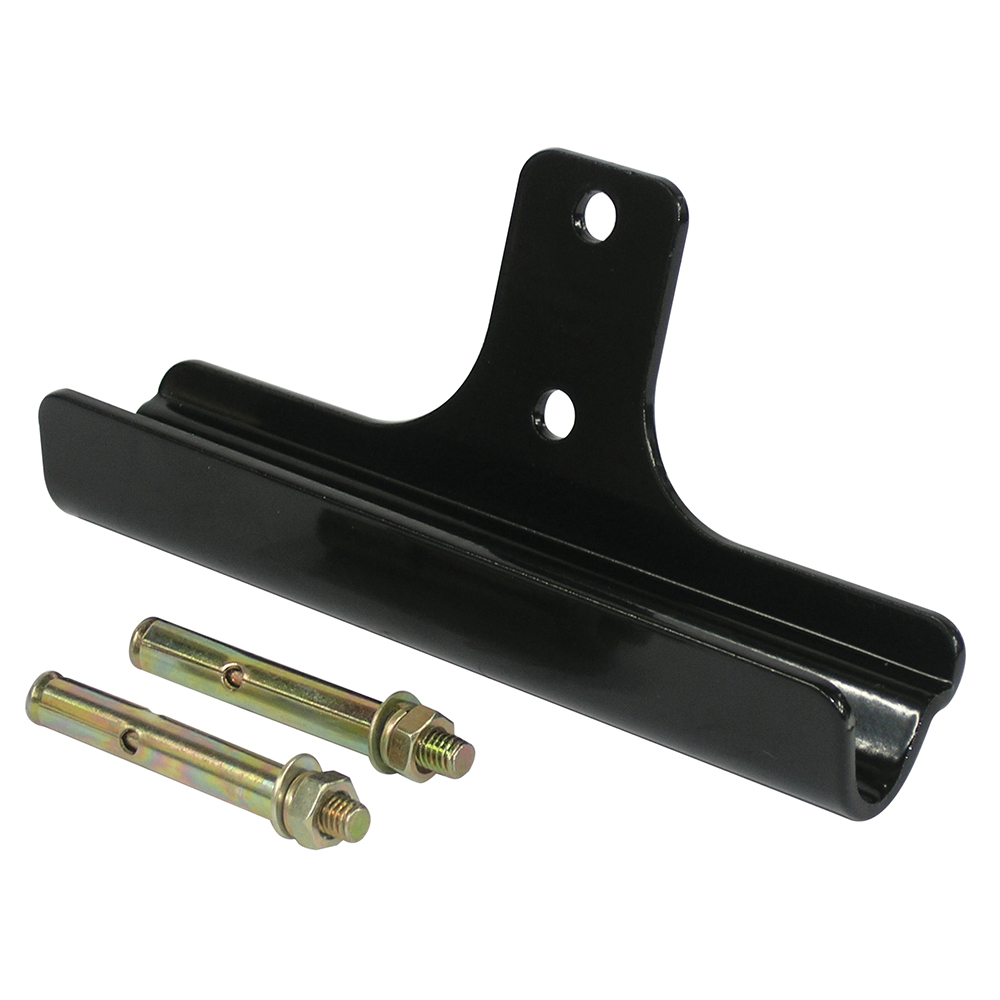 Essieu en acier robuste et base de fixation avec garde d'arrêt.