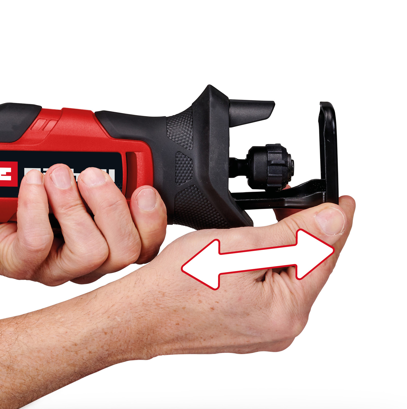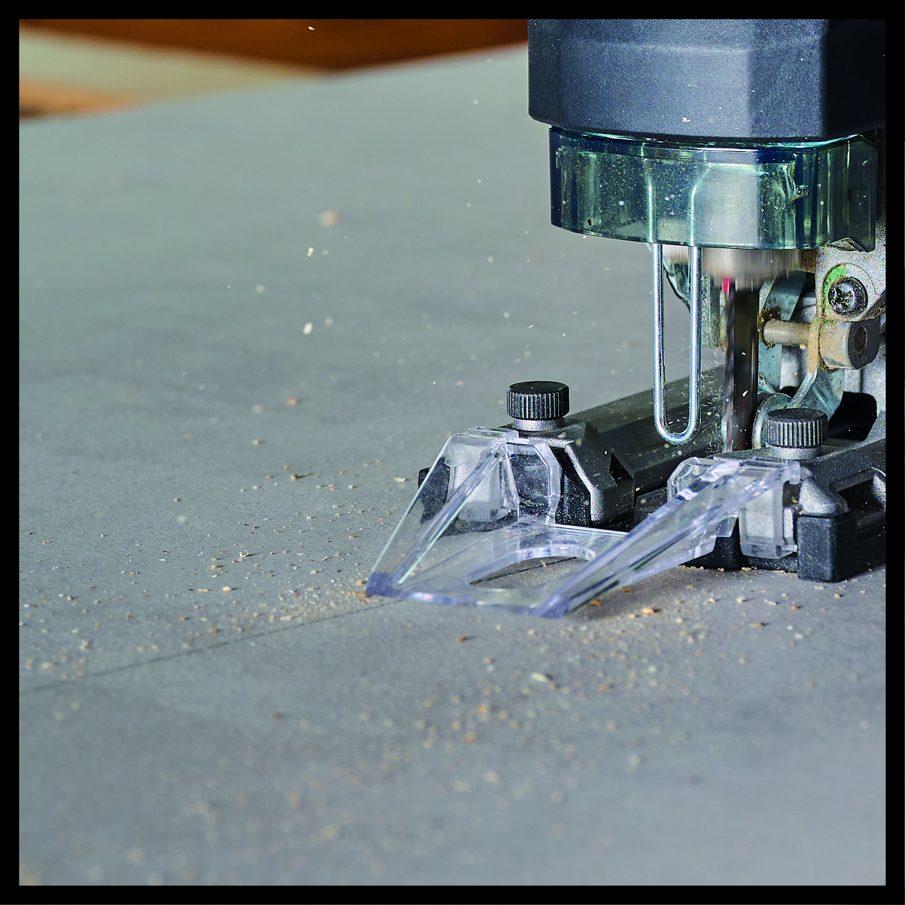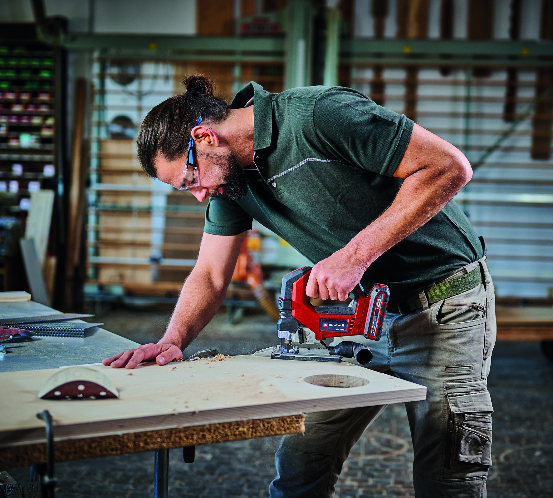 Détail du produit: L'outil est entraîné par un moteur sans balais PurePOWER d'Einhell. Le moteur sans balais est garanti 10 ans après son enregistrement en ligne. Le mouvement orbitale peut être activé pour des coupes rapides. La puissante scie sauteuse sans fil permet de réaliser des coupes jusqu'à 135 mm (5-1/4") de profondeur dans le bois et 10 mm (13/32") dans l'acier, ainsi que des coupes en angle jusqu'à 45°. Elle est équipée d'un indicateur de ligne de coupe très pratique. Le contrôle de vitesse électronique permet d'adapter parfaitement l'outil au matériau et à l'application. Le système de démarrage progressif intégré offre une grande sécurité et protège le moteur. La semelle en aluminium solide assure un angle de coupe très précis.