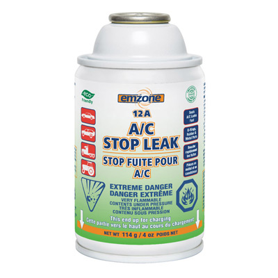 Détail du produit: Le Stop Fuite 12A pour A/C d’emzone scelle les fuites de façon permanente dans les pièces en métal et en caoutchouc, incluant les évaporateurs, les condenseurs, les sécheurs, les joints toriques et les joints d’étanchéité. Améliore l’efficacité du système et empêche les fuites futures. Sécuritaire pour tous les systèmes et ne bouche pas ou ne restreint pas les flux. La canette de 114 g contient suffisamment de stop fuite pour mettre fin aux fuites mineures dans les systèmes d’A/C de 2 lb. à 5 lb.
