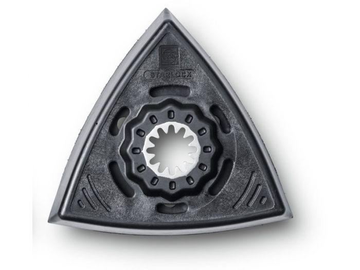 Détail du produit: Version standard pour ponçage avec aspiration des poussières. Plaque de support en plastique pour éviter les dommages et les marques sur la pièce. Forme triangulaire, version perforée, surface auto-agrippante.