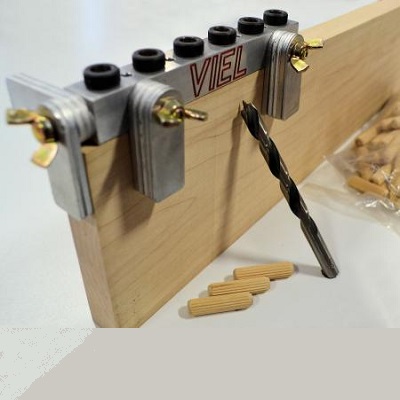 Détail du produit: Gabarit pour goujons Viel de 6". Cet outil vous permet de percer des trous de manière symétrique et précise avec 1" centre-centre entre chaque guide de perçage en acier durcit de 3/8". Les guides (6) sont disponibles en 4 diamètres différents (1/4", 3/8", 5/16" et 5mm). Des languettes de 1/8" et 1/16" garderont votre gabarit parallèle à la pièce à percer. (guide 1/4" inclus)