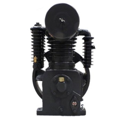 Détail du produit: Pompe bi-étagée à deux cylindres en fonte moulée - tête, cylindres, post-refroidisseur, refroidisseur intermédiaire et corps de pompe.