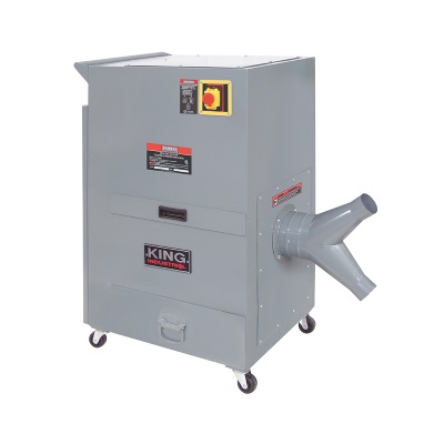Détail du produit: Puisant moteur de 2 CV,220V / Interrupteur de sécurité avec activation à 2 étapes et ouverture forcée en cas de panne d'électricité / Idéal pour la collecte de copeaux métalliques et de poussières abrasives produites par des ponceuses à métal, tourêts, scies de coupe à froid et machines à ébavurage et chanfreiner / Grand tiroir à copeaux métalliques est facile d'accès et facile à nettoyer / Entrée de 6'' avec adapteur d'entrée en Y avec deux entrées de 3'' permettant de raccorder jusqu'à deux machines pour le métal / Comprend : grand filtre en papier et un filtre à charbon activé par le fer