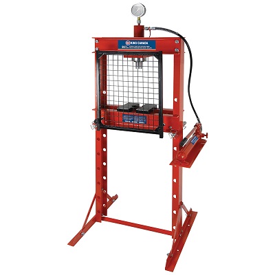 Détail du produit: Pompe hydraulique à commande manuelle de 20 tonnes Garde à grillage robuste protégeant l?opérateur pendant l?utilisation Structure de châssis robuste en "H" avec manomètre indiquant la pression Idéale pour redresser, aplatir, plier ou étamper Utilisé pour installer ou enlever engrenages, bagues ou des roulements Tablier mobile réglable en hauteur avec tiges de support Comprend 2 plaques de pression