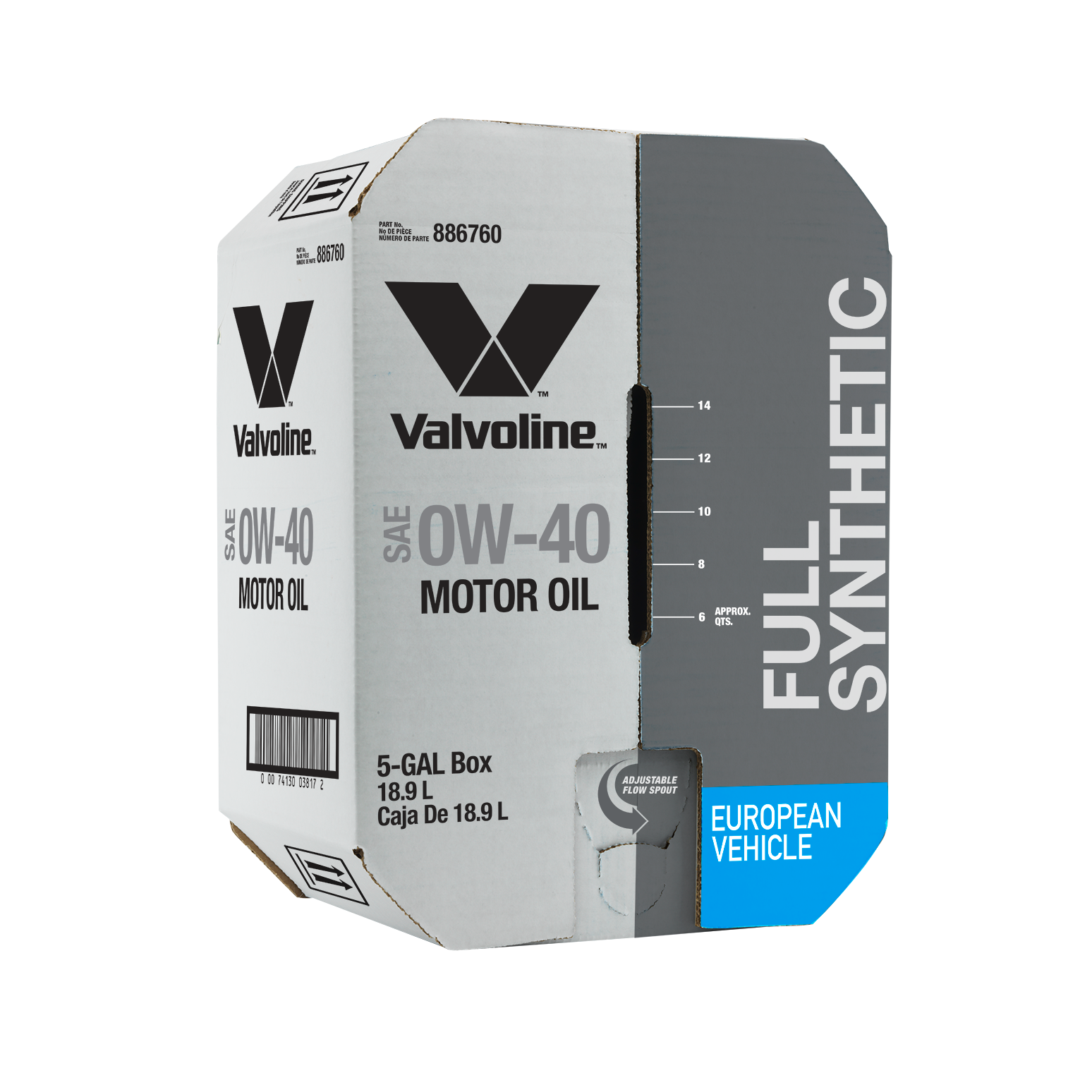 Description additionnel: (La photo n'illustre pas le bon format) L'huile à moteur Valvoline entièrement synthétique pour véhicules européens SAE 0W-40 est une huile de qualité supérieure composée d'huiles de base synthétiques de la plus haute qualité et d'une préformulation d'additifs de pointe pour répondre aux exigences des constructeurs européens.
