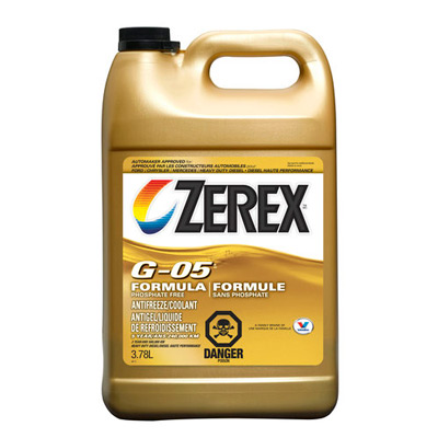 Approbations: Zerex G-05 est conforme ou supérieur aux exigences suivantes de l'industrie et des moteurs: Chrysler MS9769, Ford WSS-M97B51-A1, ASTM 03306, GM 1852M, GM 1852M, GM 1899M, 'ercedes, John Deere et MTU